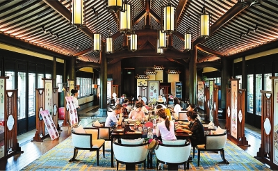 “康养经济”培育消费新热点。图为游客在位于黄山市徽州区的院藏徽州智慧康养基地里品尝药膳。