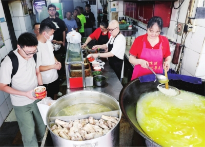 8月30日上午10时,三四十平方米的店内依旧座无虚席,不少顾客甚至端着碗站在门口,就为这一口熟悉的老味道。