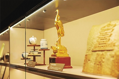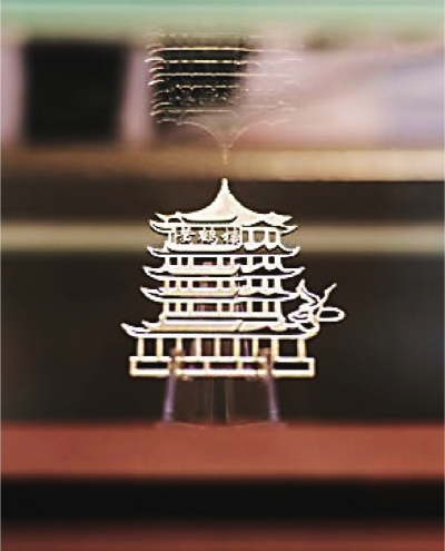 馆内展出了一件采用激光切割技术、用金属板制成的微型黄鹤楼,只有2指宽、3指高,厚度不足1毫米,堪称一件别致的艺术品。