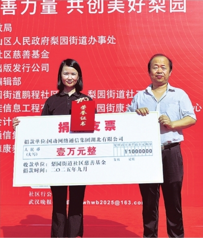 国动网络通信集团湖北有限公司等单位先后上台为梨园街道社区慈善基金捐款。