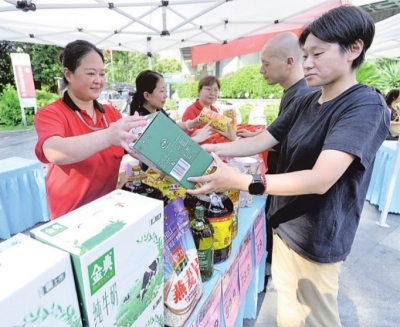 香氛洗衣液每瓶39.9元,中百劲购手帕纸30包超值特卖……中百仓储秦园路店的工作人员将近期回购率超高的多款品牌畅销商品、米面粮油、小食等搬来社区行现场展销。