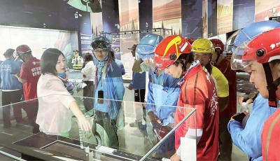 活动在盘龙城遗址博物院开启寻根之旅,馆内从造型独特的青铜器到纹理精美的玉器,从古城遗址复原模型到生动的历史场景再现,让外卖小哥们看得入神。黄陂的历史文化,让他们沉浸式触摸这片土地的千年文脉,真切感受到黄陂作为长江流域青铜文明重要发源地的厚重底蕴。结合此次活动,区委社会工作部联合黄陂区公安分局腾龙派出所,将反诈宣讲作为新兴领域“大思政课”的重要一环,精准推送至新就业群体,为其筑牢安全防线。