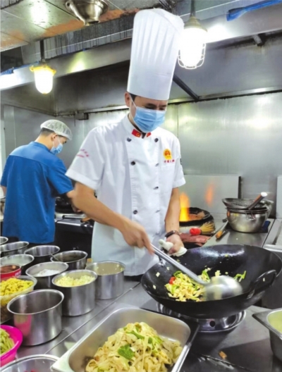 “做这个菜并不赚钱,但大家都很认真,并不敢降低标准。”丁文斌制作的佛跳墙,一份要卖1888元,但他在后厨制作这些家常菜,对食材和火候要求都很高,“平时居民给了我们很大的支持,大家也希望可以回报一下社会,不存在‘大材小用’一说”。