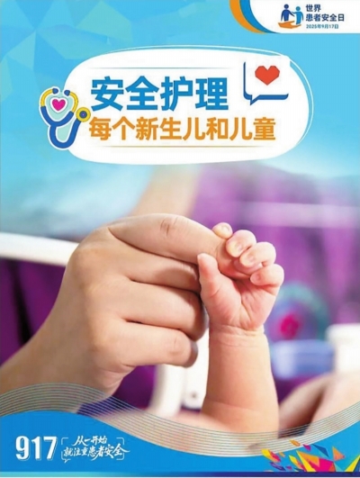 2025年9月17日是第七个世界患者安全日,活动主题为“安全护理每个新生儿和儿童”,国家卫生健康委发布了官方海报。