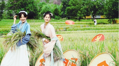 今年是大余湾举办的第三届晒秋节,规模更胜以往。景区新增木栈道引导游客深度游览,而“余夫田园”则成为最受欢迎的拍摄点位之一。少女们在稻浪间奔跑嬉戏,身影翩跹如画。黄陂区摄影家协会会长李霖笑称:“这长焦、短焦、无人机已是忙个不停。”