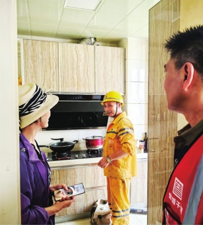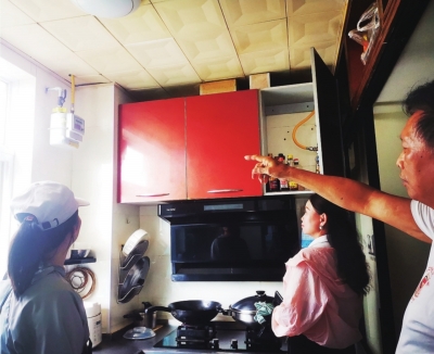 燃气管道改造“一户一策”现场沟通。