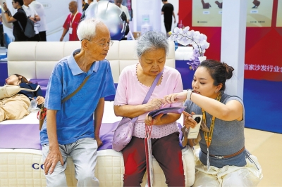观众在深圳国际智慧养老产业博览会了解睡眠产品。