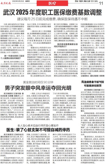 为持续做好职工医保参保缴费,有效衔接年度缴费基数标准调整工作,按照要求,我市新的医保缴费基数标准执行时间自缴费基数正式发布次月1日起执行(含灵活就业人员和单位职工)。此次调整的2025年度武汉市职工医保缴费基数标准自10月1日开始执行。今年7月至9月,我市用人单位在职职工和灵活就业人员,在此时间段医保参保未缴费和应参保未参保进行补缴的,均按原缴费基数(2024年度武汉市职工医保缴费基数标准)执行。