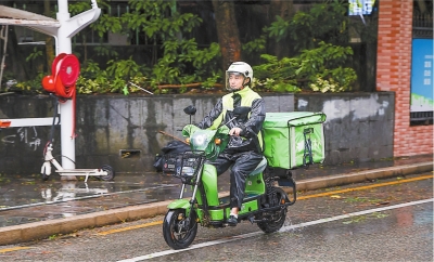 昨日16时起,深圳解除“五停”措施,一名外卖员驾驶电动自行车行驶在路上。
