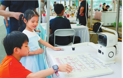 小朋友与象棋机器人对弈。