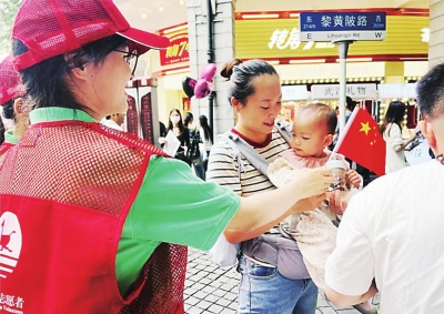 志愿者为游客提供服务。