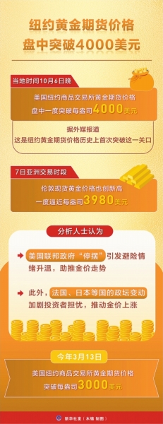 10月8日,现货黄金突破4000美元/盎司,一度高达4061.2美元/盎司,再创历史新高,年内涨幅超52%。