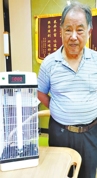 郭代银和他发明的数控灭蚊灯。