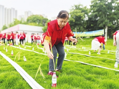 运动会上,“插秧”“浑水摸鱼”“欢乐赶鸭”等农耕趣味项目接连开展。党员志愿者全程引导协助,居民踊跃参与,田间欢声笑语不断。不少居民在体验后主动咨询加入社区“萤火先锋队”,志愿精神悄然浸润人心。
