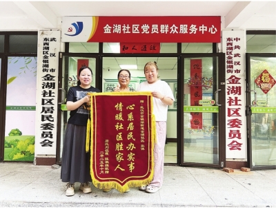 在东西湖区金银湖街道金湖社区金湖听语小区,一面崭新的锦旗在社区办公室的墙上熠熠生辉。“心系居民办实事 情暖社区胜家人”十四个金色大字,记录着一个跨越五年的温情故事。2025年10月9日,社区居民刘祖霞专程送来这面锦旗,而故事的主角,是35岁的网格员张佩。