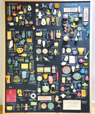 她按照新石器时代、夏商周、秦汉等29个古代中国较为有名的朝代,将博物馆文物冰箱贴分门别类。她算了算,这块展示板展示了华夏一万年的文明。