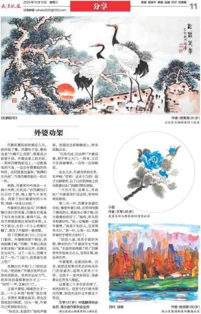 “任务完成,回去啰!”外婆说着,顺手带上大门,一转身,又忍不住捂着嘴笑,一边笑一边抹眼泪。