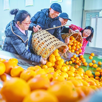 重庆市垫江县的种植户将刚采摘的柑橘放入分拣机器内。(资料照片)