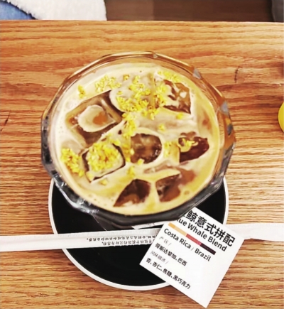 咖啡馆的桂花拿铁深受年轻人喜爱。