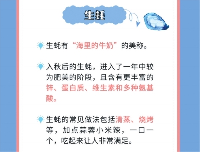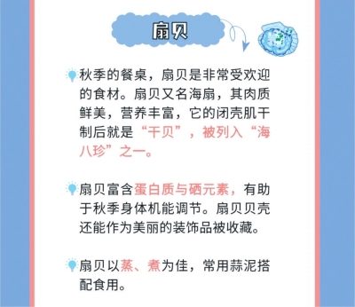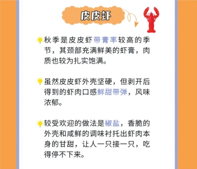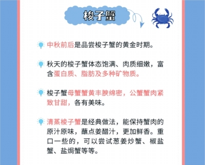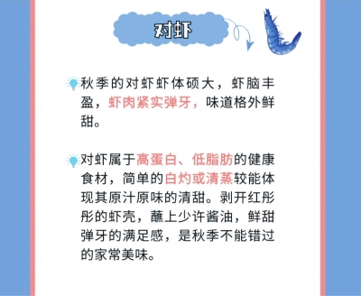 金秋时节,休渔期结束,正值海鲜个头肥美、肉质鲜嫩之时,也是食客们“尝鲜”的好时候。秋季有哪些不容错过的海鲜?应该怎么吃?