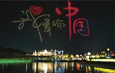 10月4日晚,在浙江省金华市武义县花田美地景区,精彩的无人机表演为游客呈现了一场视觉盛宴。