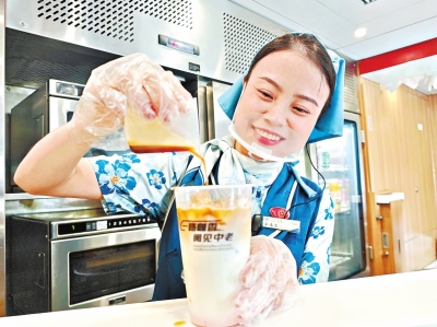 9月20日,工作人员在中老铁路列车上制作玫瑰特调咖啡。