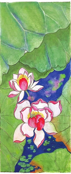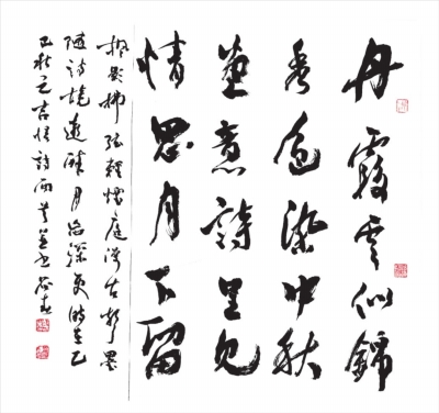 释文:丹霞云似锦,秀色染中秋。画意诗呈见,情思月下留。