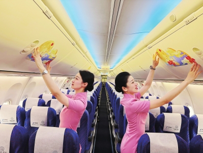 南航空姐在整理内务。