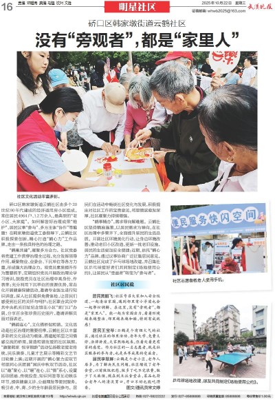 居民黄鹏飞:社区号召大家加入安全巡逻、一起清洁家园,遇到邻里有小矛盾也会一起帮忙调解。在这里,没有“旁观者”,都是“家里人”。能一起为家园出力,看着环境越来越整洁、邻里越来越和睦,特别有成就感!