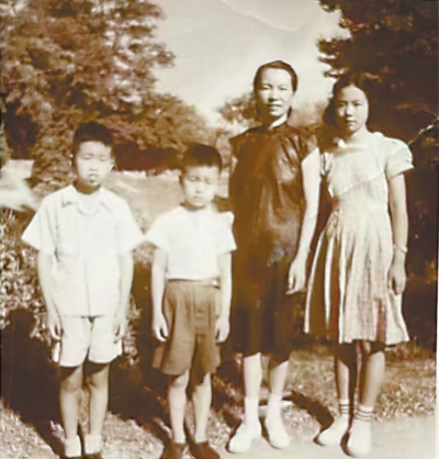 1948年夏,顾倬云(右一)与姨母朱枫(右二)在上海。