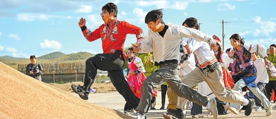 内蒙古呼伦贝尔市额尔古纳市恩和俄罗斯族民族乡的学生参加体育活动。