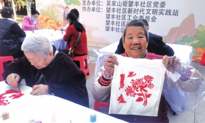 10月24日,东西湖区吴家山街道望丰社区在红色文化广场精心举办重阳节手工DIY拓印帆布包活动,同步增设义剪服务,用务实举措为老人们送上节日关怀。