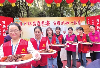 “这已经是第三届百家宴了,一年比一年热闹,咱们街坊和商户的关系也越来越亲!”居民李阿姨的赞叹声,道出了大家对活动的认可。近日,在洪山区洪山街道武昌府社区,一场以“商户联盟百家宴 商居共融一家亲”为主题的邻里活动,汇聚商户特色美食、便民服务资源与邻里温情,让“商居一家亲”的理念深入人心。
