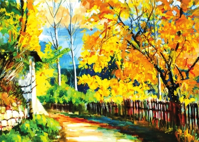 《野色呈秋》 水粉写生