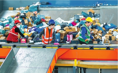 甘肃省张掖市邮件处理中心智能分拣流水作业线。
