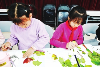 青少年树叶贴画活动。