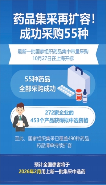 7年多来,国家组织集采持续推进,已将490种药品和心脏支架、人工关节、人工晶体、人工耳蜗等多种高值医用耗材纳入其中。据悉,预计全国患者将于2026年2月用上新一批集采中选药。