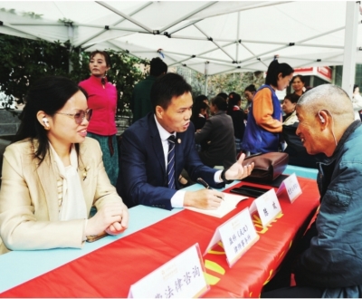 北京盈科(武汉)律师事务所律师现场为居民提供法律咨询。