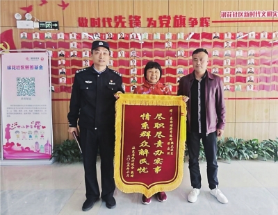 近日,银花社区居民许婆婆将一面印有“情系群众解民忧,尽职尽责办实事”的锦旗送到社区书记方永恒和辖区民警王建军手中。这面锦旗不仅代表了居民的诚挚谢意,更是对银花社区创新推行“社警联动”工作机制的充分肯定。近年来,银花社区通过党建引领、警力下沉、资源共享,探索出一条提升基层治理效能的新路径。