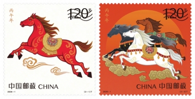 《丙午年》特种邮票由王红卫、赵恩重设计。邮票中的骏马既展现出“一马当先”的开拓气概,也诠释了“万马奔腾”的团结力量,将马的形象与新时代中国人民奋发进取的精神风貌完美融合于方寸之间。