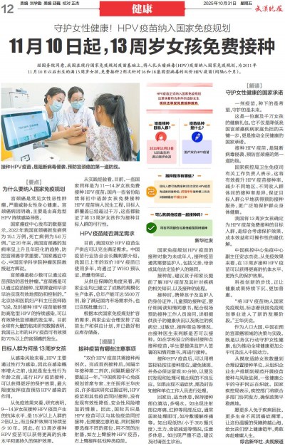 11月10日起,13周岁女孩免费接种
