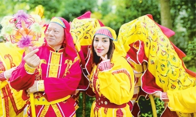 辖区居民与华中科技大学同济医学院留学生同台表演。