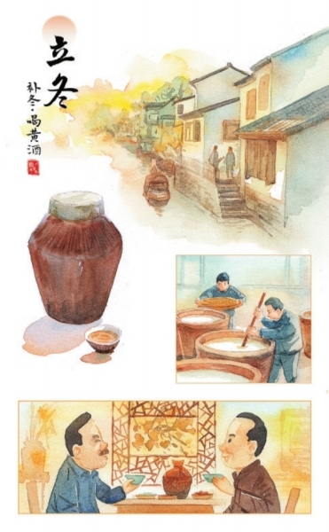 在浙江绍兴,立冬之日开始酿黄酒是传统风俗,民间会举办祭祀“酒神”的活动,以祈求福祉。当地人通常认为,当年立冬至次年立春这段时间是酿黄酒的最佳时间,这时酿出来的黄酒称为“冬酿”。此时水体清冽、气温低,可有效抑制杂菌繁育,又能使酒在低温长时间发酵过程中形成良好的风味。