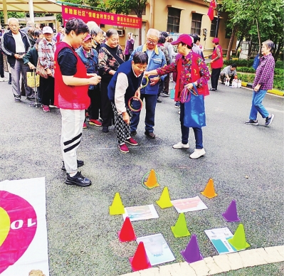 老年人参加社区举办的趣味运动会。
