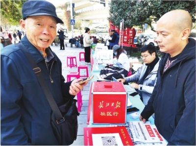 居民开心参与长江日报社区行抽奖活动。