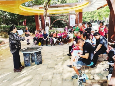 居民们在清风亭里开展诵读活动。