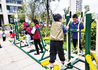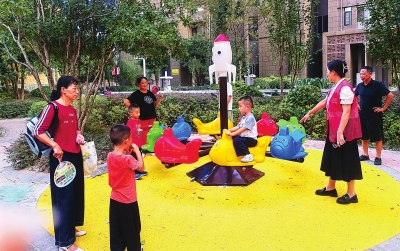 增设娱乐设施,打造“快乐驿站”。秋千、飞碟及旋转木马等娱乐设施投入使用后,儿童娱乐区更是成为社区“人气打卡地”,小区中心广场热闹非凡,孩子们组队排在新安装的秋千和旋转木马旁边,边说笑边等待,儿童娱乐区也成了小区孩子和家长们新的“社交热点”。“社区这次安装了几处娱乐设施,填补了小区娱乐设施的空白,真是把实事办到了我们的心坎里了!”居民张小华对新安装的娱乐设施赞不绝口。