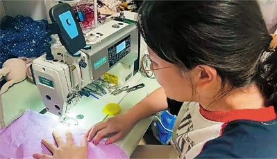 “一开始完全摸不着头绪,踩踏板总跟针线不同步,线还老卡进机器里。”枚枚笑着回忆,直到8月底上完两次课,开始能独立缝出小包包、口水巾等简单布艺品。