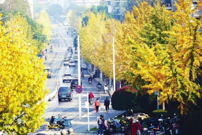 武昌区首义路的银杏“黄金大道”迎来观赏旺季。