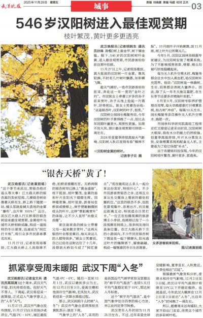 武汉晚报讯(记者金文兵 通讯员高琪清)这个周末,武汉天气不错,阳光持续在线。但好天气不等人。下周起,武汉将迎来一波降温,正式迈入气象学意义上的“入冬”天气。